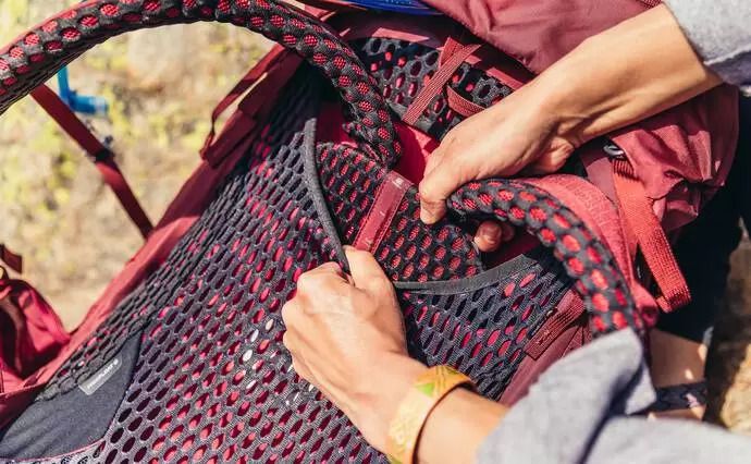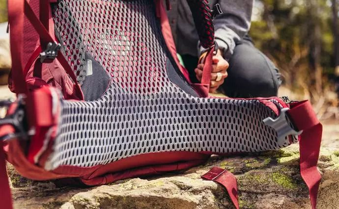 Ventilated, suspended mesh backpanel featuring Gregory's FreeFloat dynamic comfort cradle lower back system and auto-canting, rotating harnesses for the ultimate in dynamic fit and comfort.